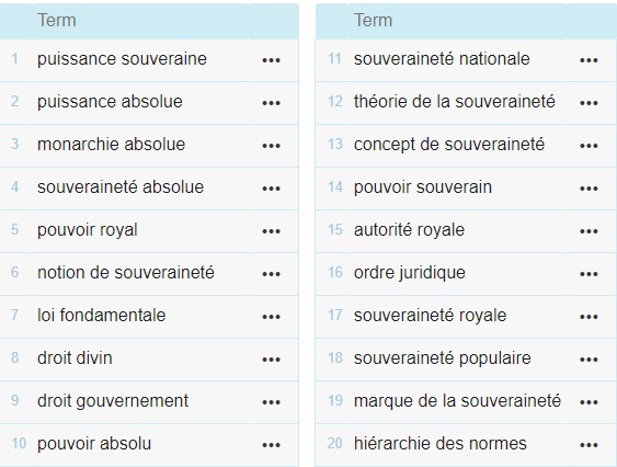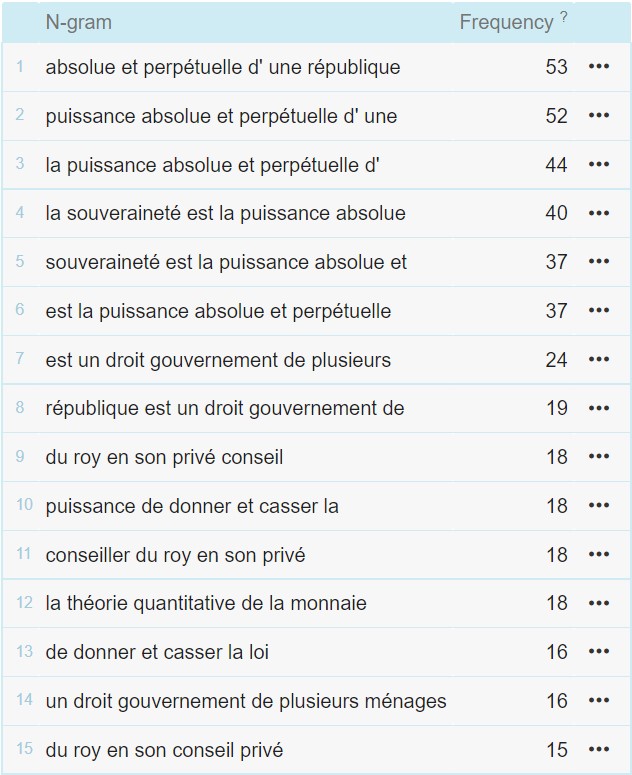 This multi-word keyword analysis really just demonstrates that Bodin’s approach to constitutional theory is legalistic, and that an analyst of Bodin’s work needs to figure out the conceptual relationship between sovereignty and absolutism.